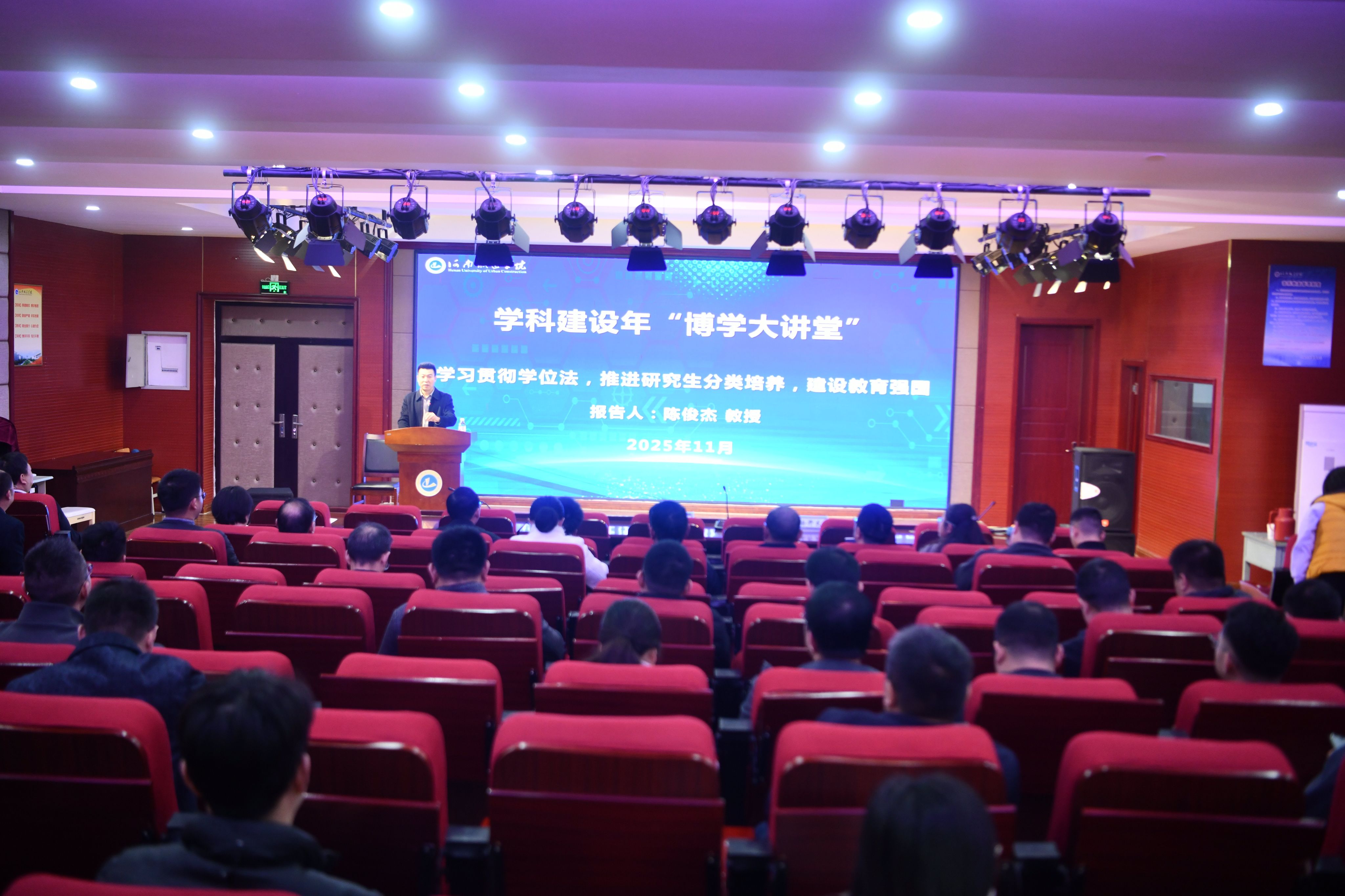 陈俊杰教授系统梳理了我国研究生教育的发展历程、现状及研究生培养面临的机遇与挑战,深入解读了《中华人民共和国学位法》的核心要义与政策导向,详细阐述了学术学位与专业学位在培养目标、选拔机制、课程设置、论文评价、成果要求等方面的差异,提出要深入推进学术学位与专业学位分类发展,强化科教融汇与产教融合,全面提升研究生自主培养质量。针对研究生导师能力素质,陈教授结合自己在指导研究生方面的经验和做法,指出导师应具备过硬的政治素质、精湛的业务能力和高尚的师德风范。